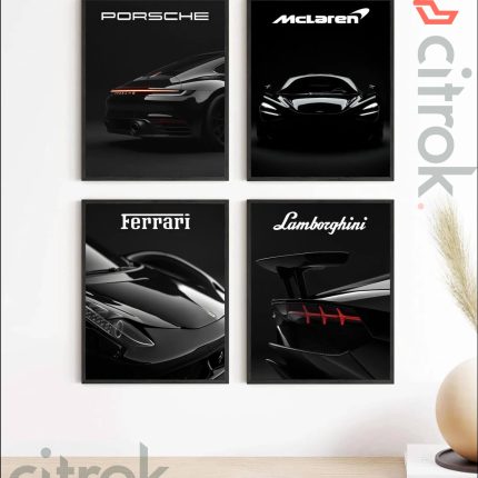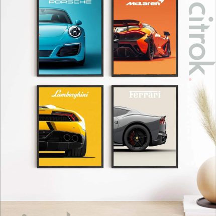 Porsche, McLaren, Lamborghini & Ferrari – Supercar Wall Art Set- CR024