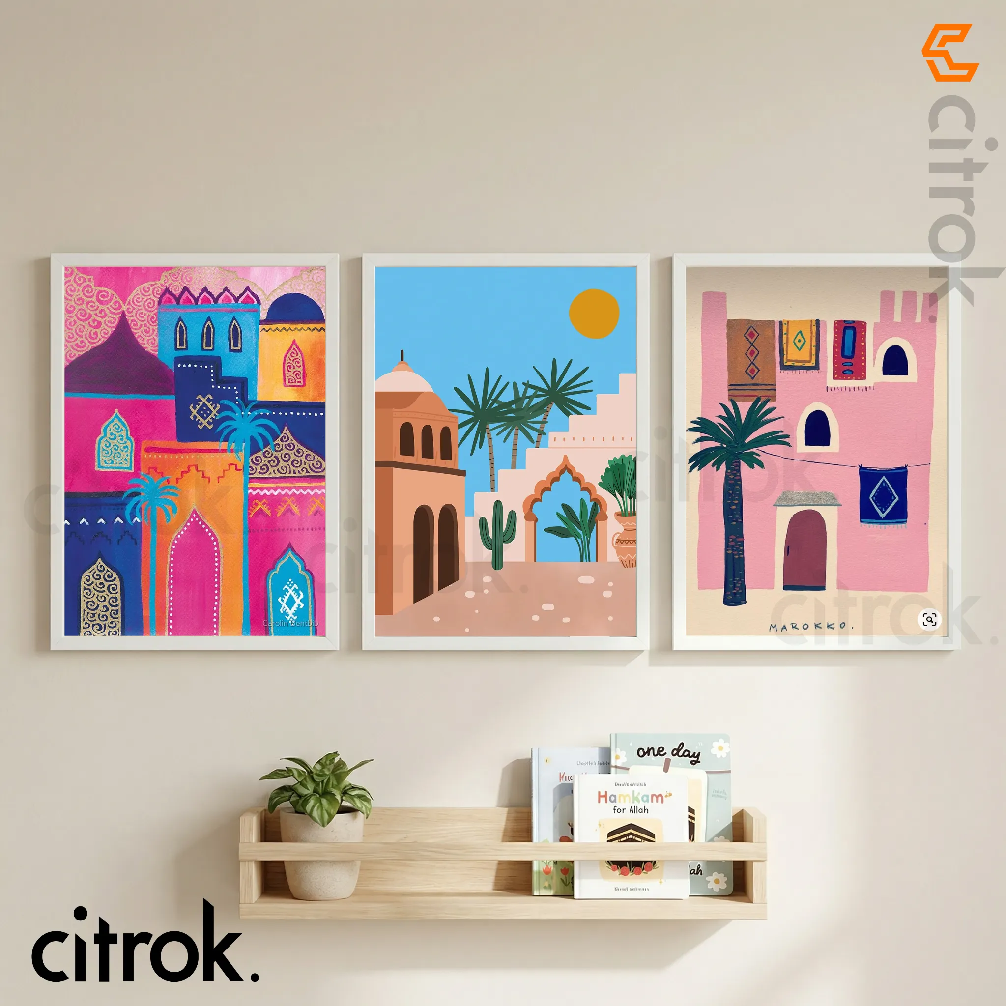 Vibrant Medina Towns – Illustrated Wall Art Set- BB005